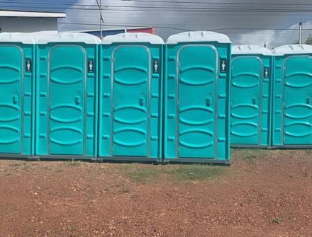 A capacidade de um banheiro químico varia, mas os modelos padrão costumam acomodar uma ou duas pessoas por vez.